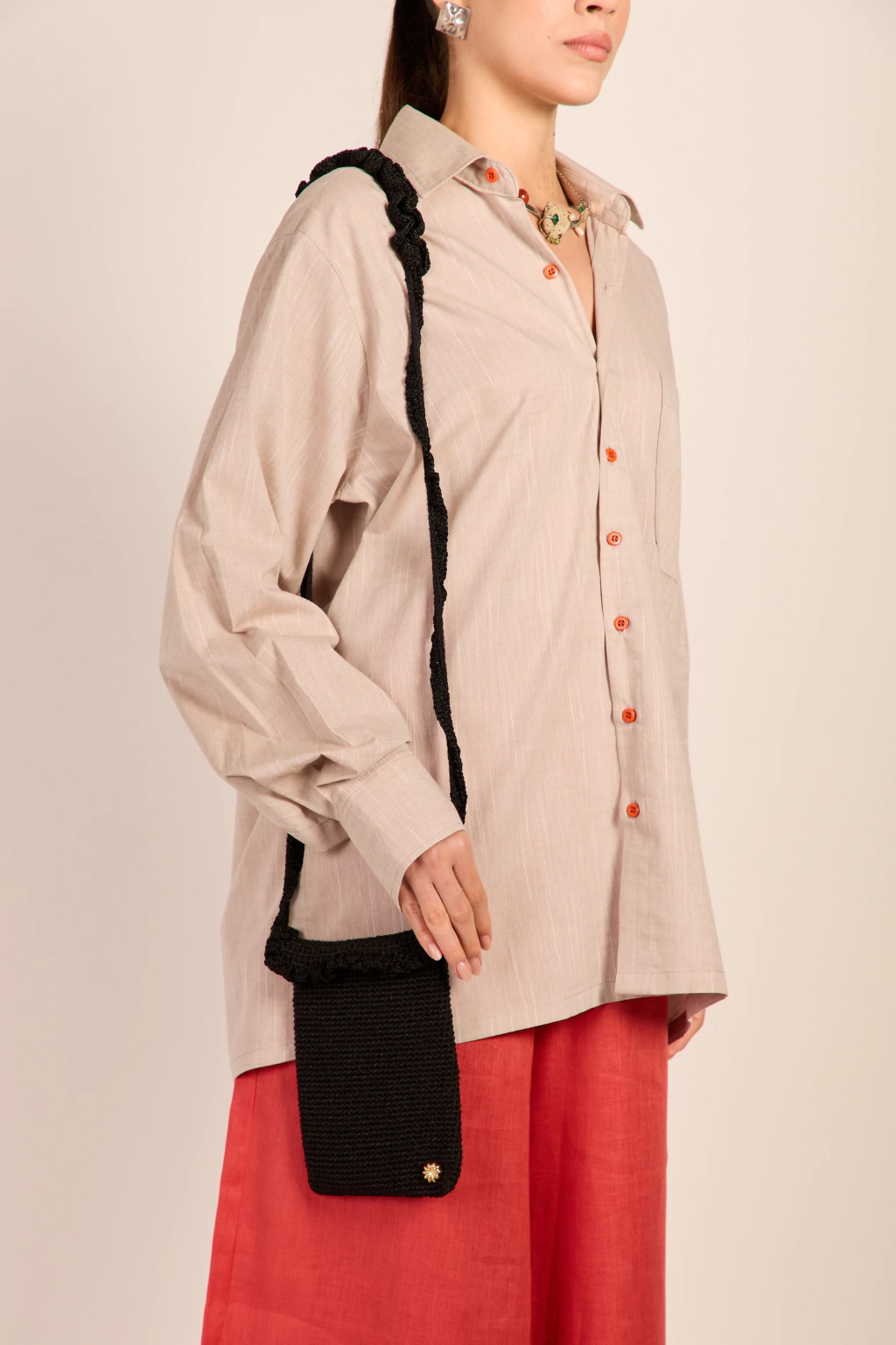 Feita a mão pelo grupo de crocheteiras das agrovilas de Curaçá na Bahia, utilizamos apenas fios reciclados. A bolsa de crochê ganha uma assinatura com o pin dourado no formato de um jerimum.