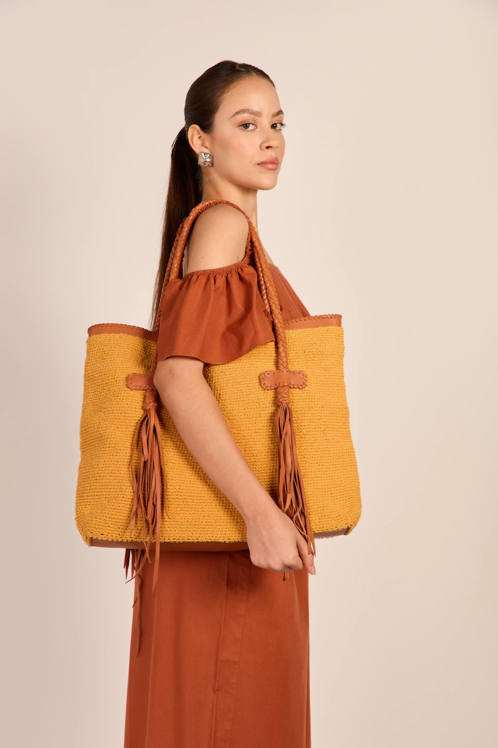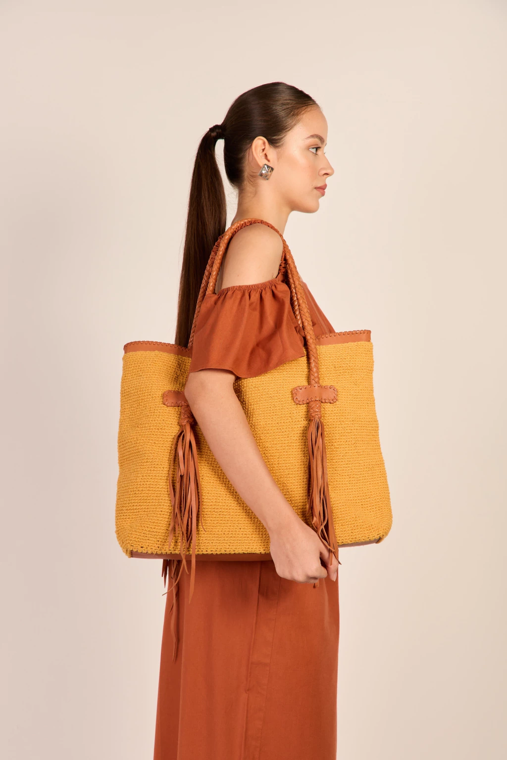 As franjas, as costuras manuais com fitas de couro e a alça delicadamente trançada com a mesma técnica que são feitos os chicotes dos vaqueiros, traduzem a estética das roupas e acessórios que representam a cultura local.