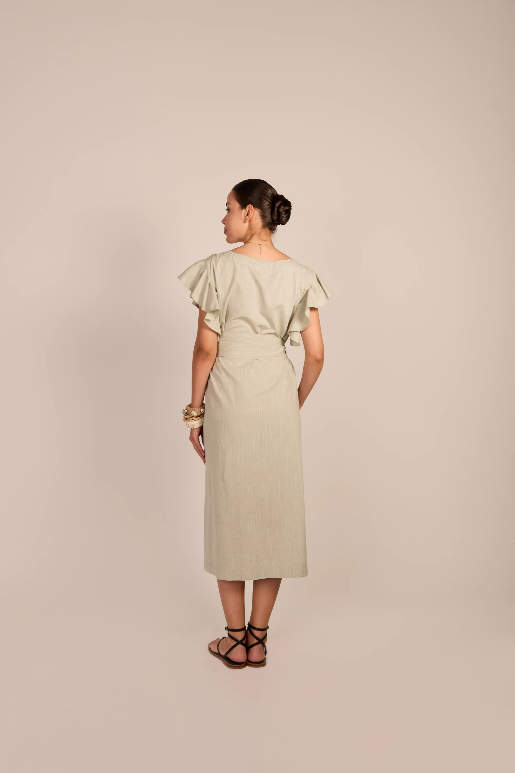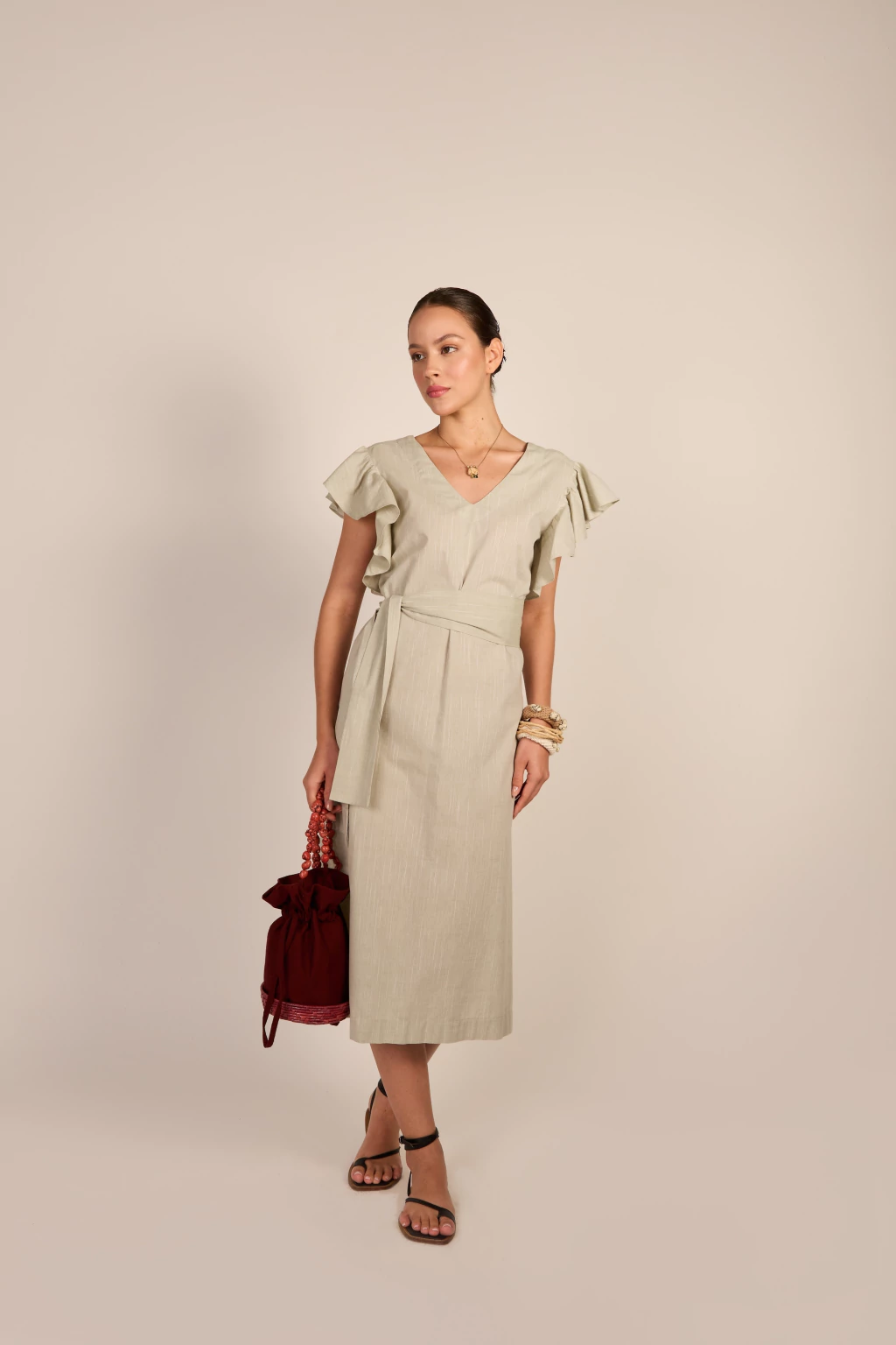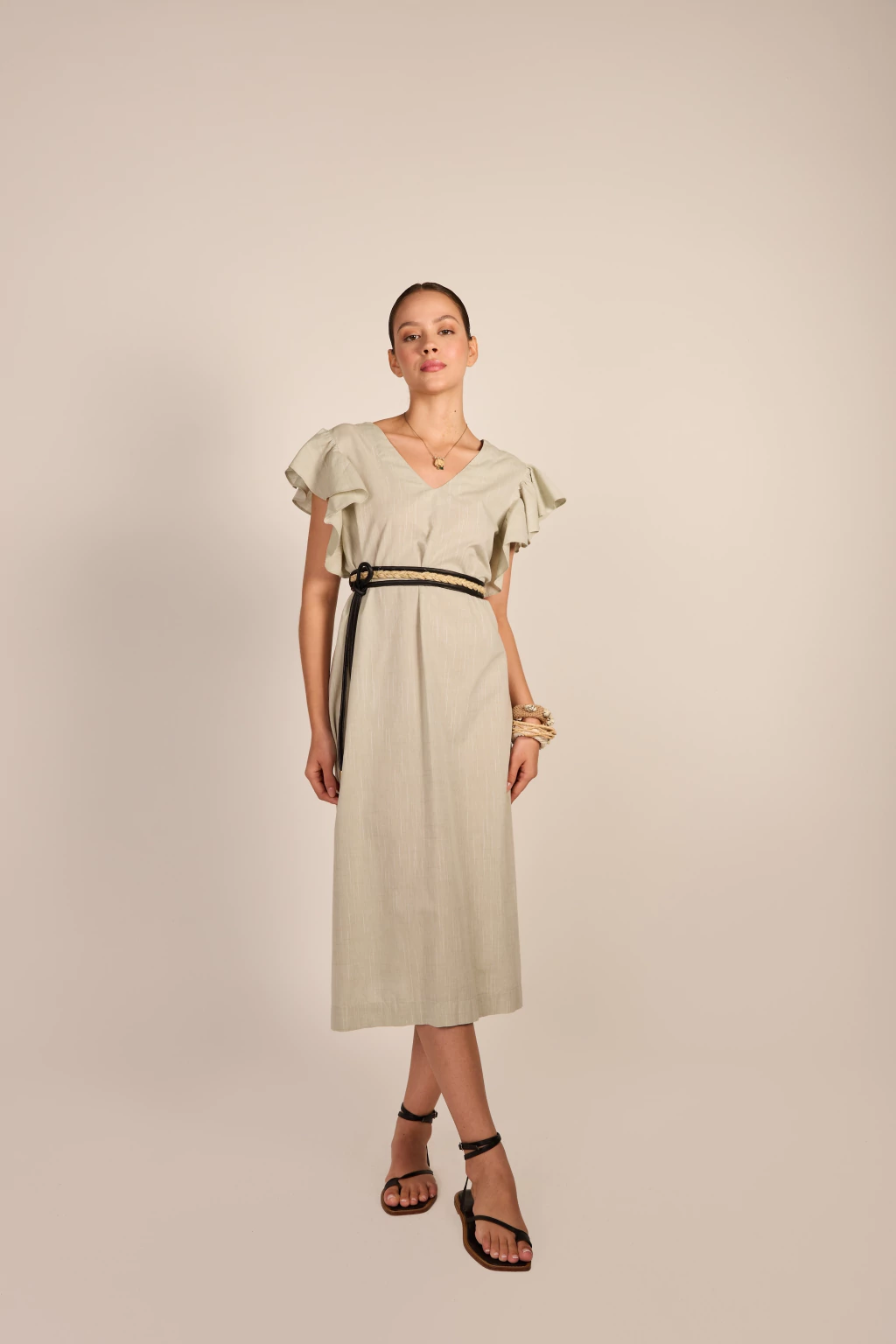 Cada peça desse capítulo é tamanho único e possui modelagem ampla e fluida para um guarda-roupa versátil, leve e casual. Vestido em algodão 100%.